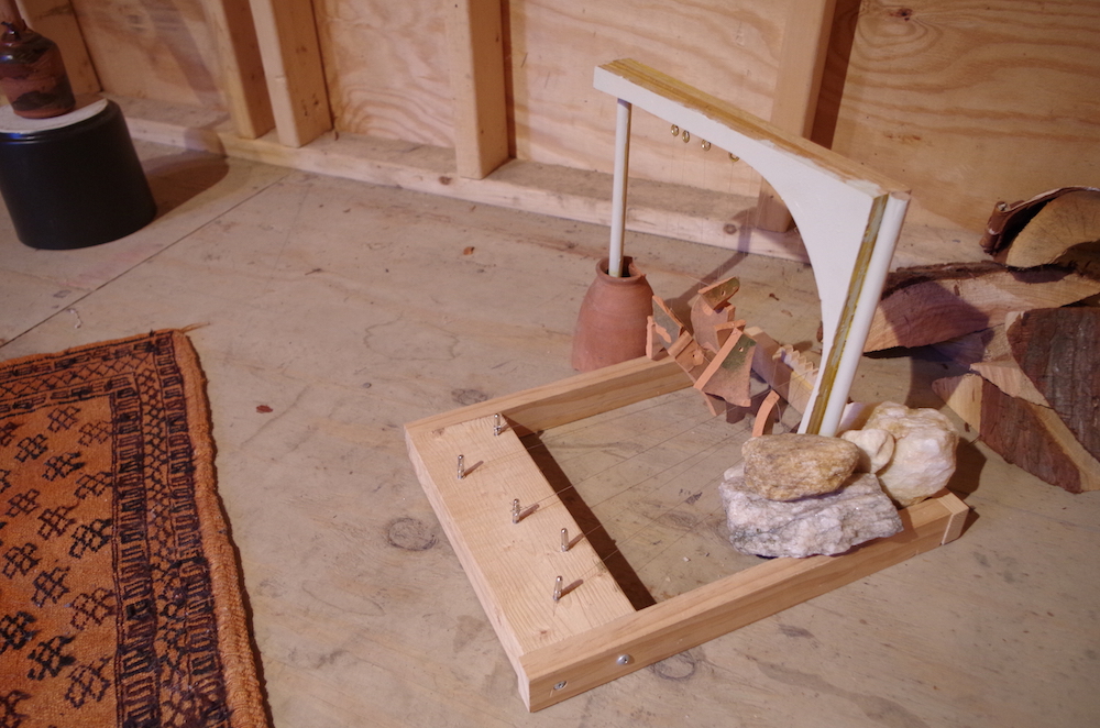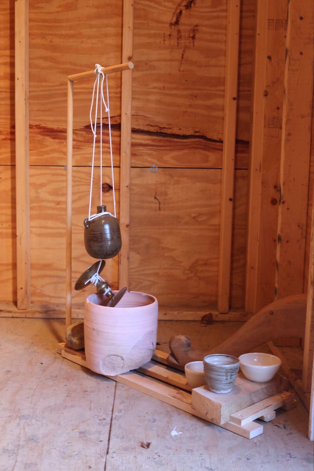 The materials I used to create these works were made from scrap wood from communal studios, discards from my friends Anna Crooks and Claire di Salvo's ceramics practices, unused materials from previous collaborations, scrap rope pieces, leftover floral wire, and rocks collected on hikes over the years.